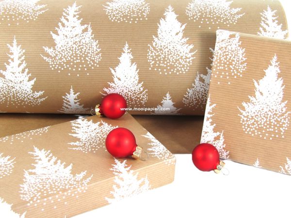 Rol 50cm x 250 meter origineel kerstpapier in bruin kraftpapier. dikte van dit milieuvriendelijke kadopapier is 70 gram, prima kwaliteit!